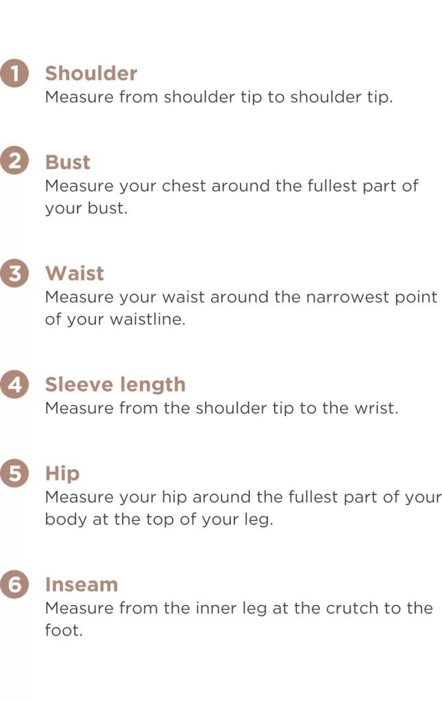 To find the perfect Enoriahouse fit, please measure yourself directly according to the following instruction. Then use the size guide on the product page and garment measurements to help you find the best fit.