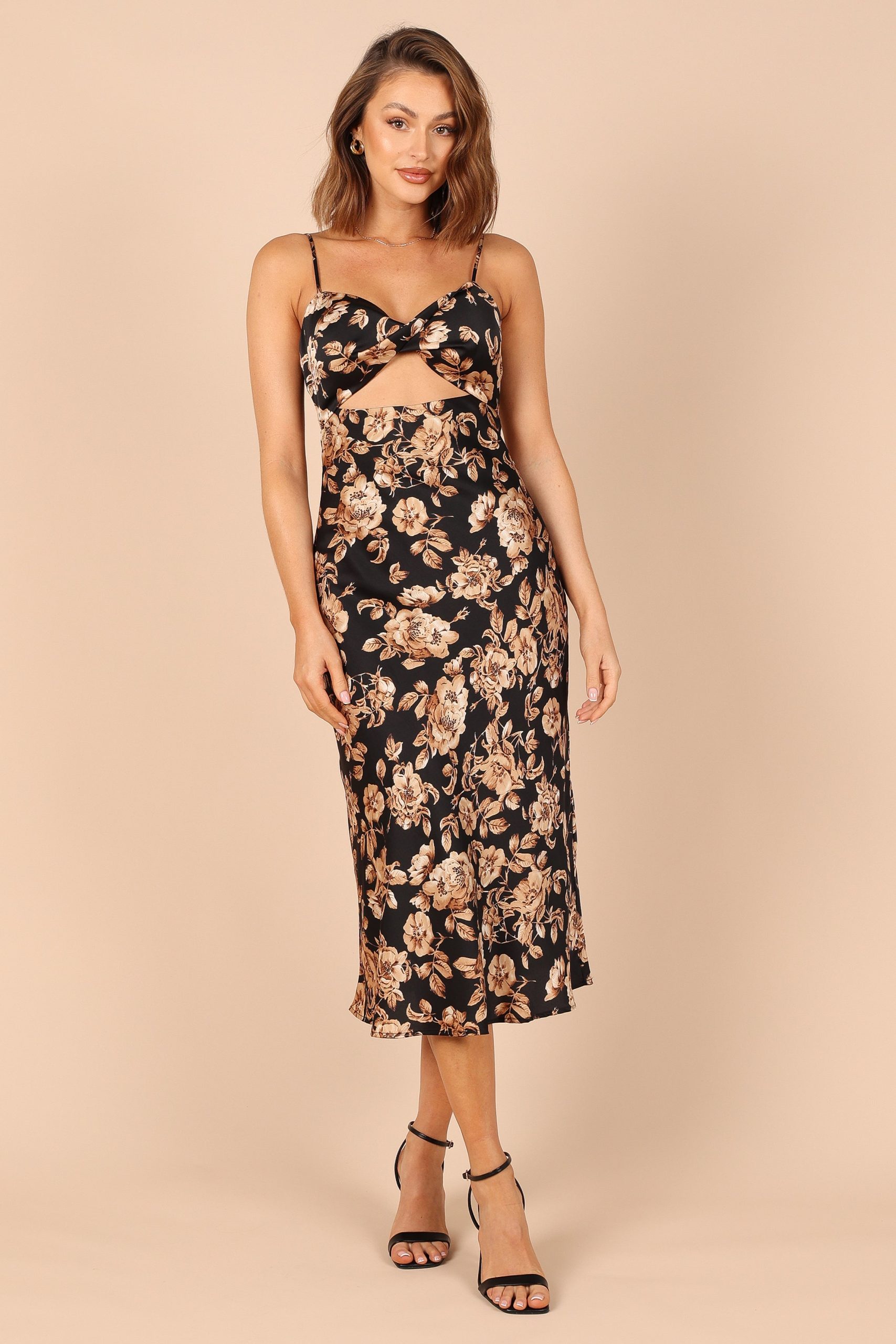 Saga Cut Out Midi Dress – Black Floral