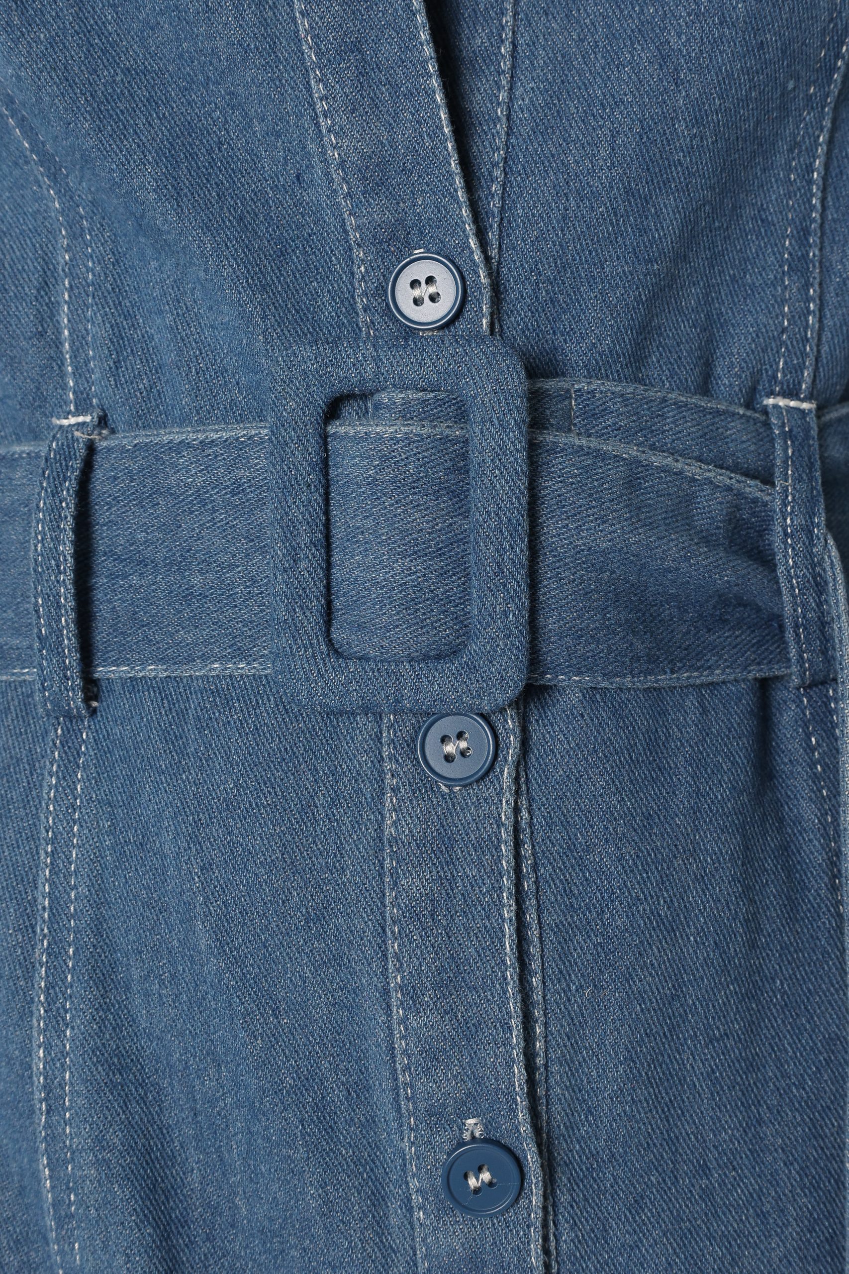 This midi length dress features a v neckline and spread collar. giving it a unique and playful touch. The long sleeves with button close add an element of sophistication. while the functional buttons down the front make it easy to style and wear.
